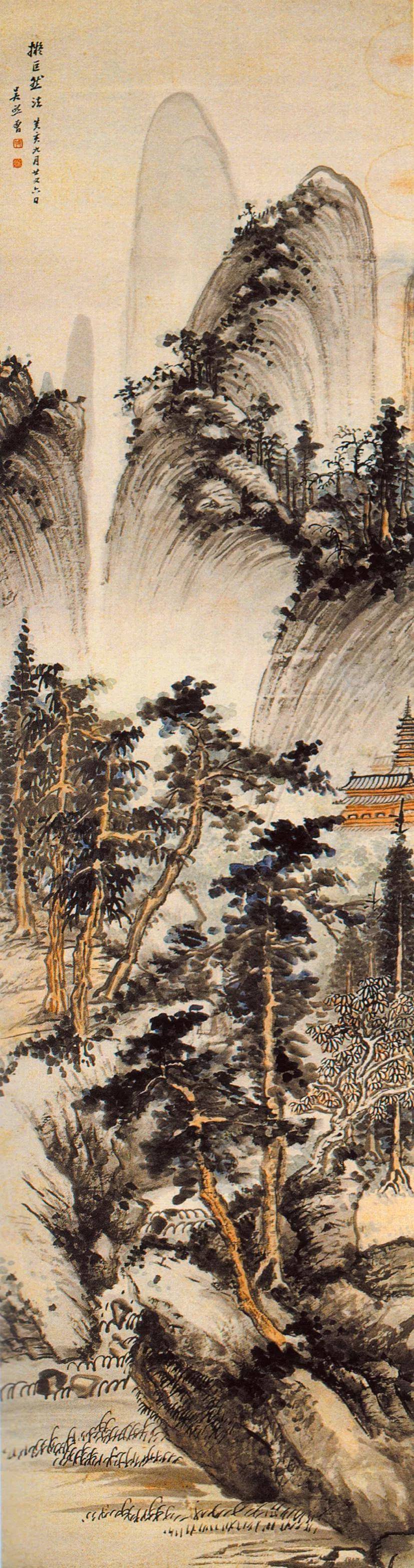 吴镜汀的山水画,常被归入“传统守成”一脉,实则暗藏突破传统的先锋性。他以北宗山水为基,却未被斧劈皴的刚硬框架束缚,反而在《溪山行旅》《秋山萧寺》等作中,将南宋马远、夏圭的边角构图与元代黄公望的疏淡笔墨熔铸一炉,创造出一种“刚柔相济”的独特语汇。
