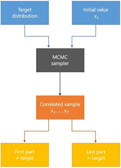 马尔可夫链蒙特卡洛方法是一组用马氏链从随机分布取样的算法,图为MCMC 的方法流程。图片来自StatLect